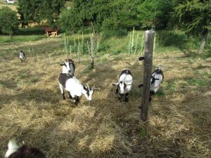 Les chèvres se nourrissent des ronces qui poussent dans le pâturage.